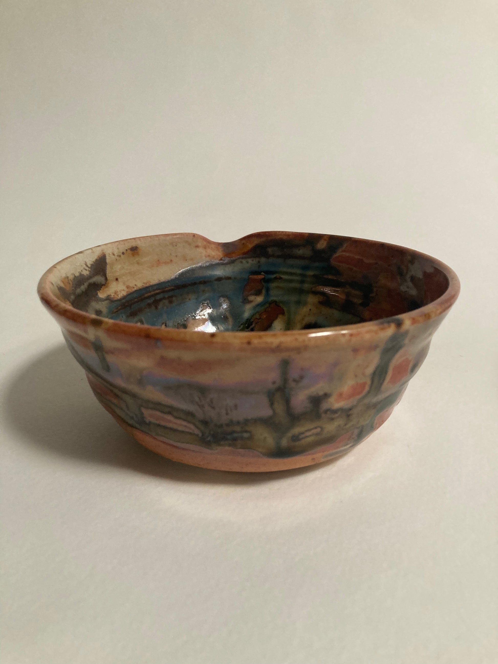 A beautiful chawan for whisking matcha (or eggs!) with mesmerizing colors and lines that leaves you wanting to stare at it all day long. A one of a kind piece by Katie Troisi using an Anagama wood kiln process.
