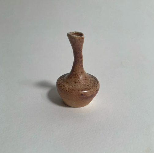 A mini vase for a couple dried stems or leave unfilled as a trinket piece on a curio shelf! These make cute gifts. A one of a kind piece by Katie Troisi using an Anagama wood kiln process.