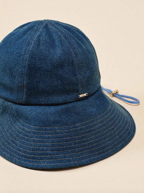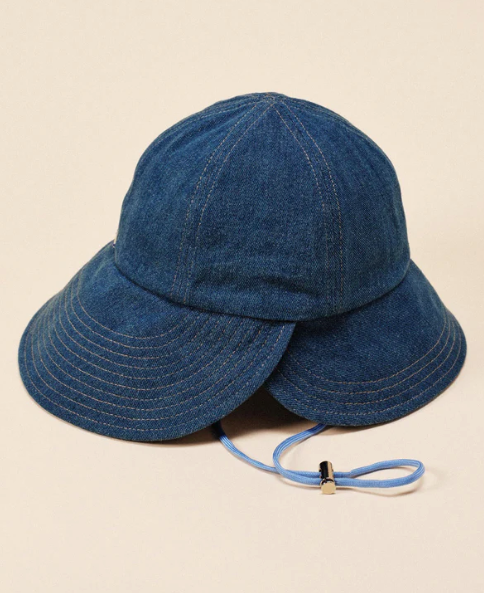Inspired by vintage rain hats, hiking hats, and bonnets, this denim bucket hat is a seasonless essential. With a separated "tulip" brim (like petals on a flower), it features an extended back brim for extra sun and rain coverage. An adjustable elastic strap is the perfect finishing feature for a customizable fit.