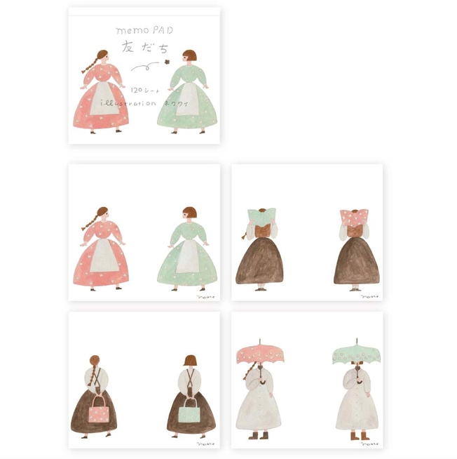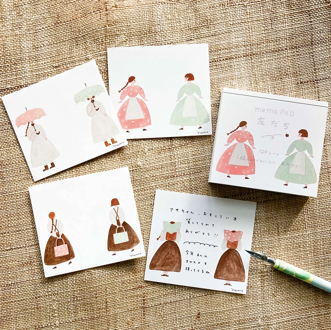 Illustrated by Nekutai, this block memo pad is a generous set of 120 sheets for everyday use with whimsy scenes of two friends on the pages. Made with thick paper to prevent ink from bleeding through, it is comfortable and reliable to write on. Perfect not only as a memo pad, but also as a small card to accompany gifts!
