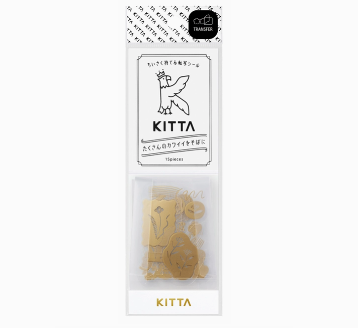 A completely new type of transfer sticker joins the KITTA lineup — offering a beautiful, ready-made foil finish with just a simple rub. Unlike traditional transfer sheets that require cutting each motif with scissors, KITTA comes in pre-cut flake shapes. Just pick the piece you want, place it, rub gently with your finger, and the design transfers cleanly and instantly. Add elegant shine to your notebooks, cards, junk journals, and DIY projects with effortless precision! Works on glass too!