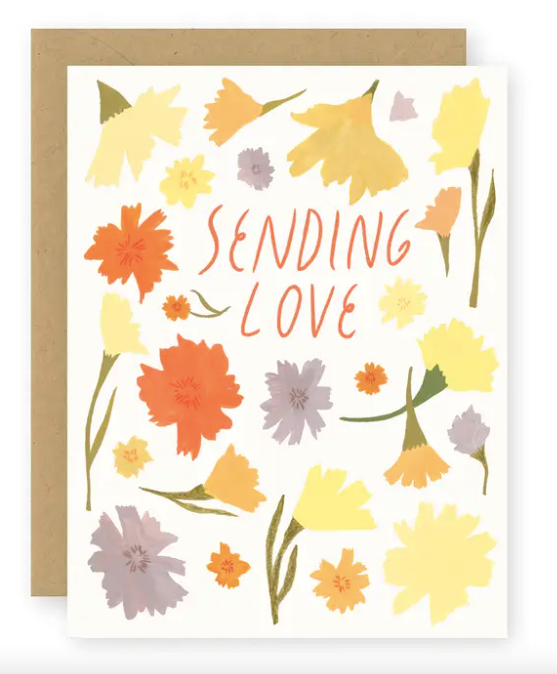 Beautiful artists drawn florals with the message "Sending Love", this card is a lovely canvas for good wishes, thoughtful notes, and sweet sentiments.