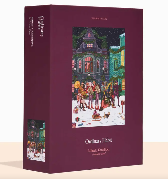 Immerse yourself in the magic of Christmas with this charming puzzle. Experience the joy of a snowy holiday scene, complete with festive musicians performing beloved carols and a whimsical gift carrier adding to the excitement. This delightful puzzle captures the essence of holiday cheer, perfect for bringing the warmth and wonder of the season into your home.