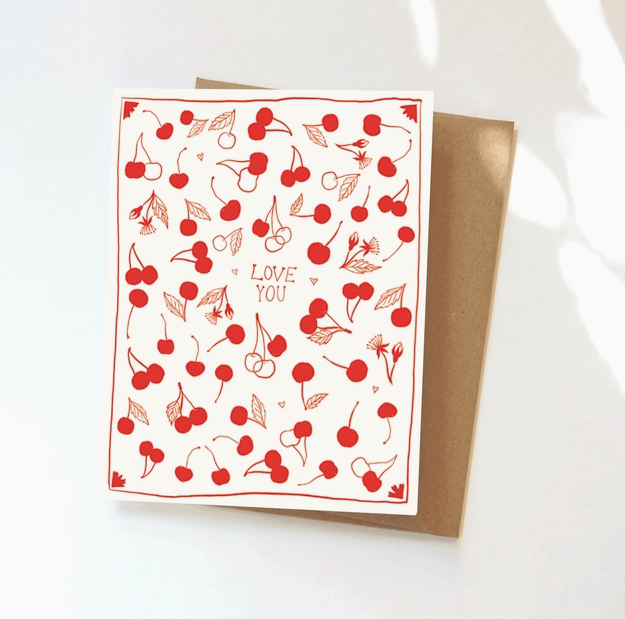A cute cherry print card, perfect for Valentine's Day or whenever you feel in the mood to send a love note.