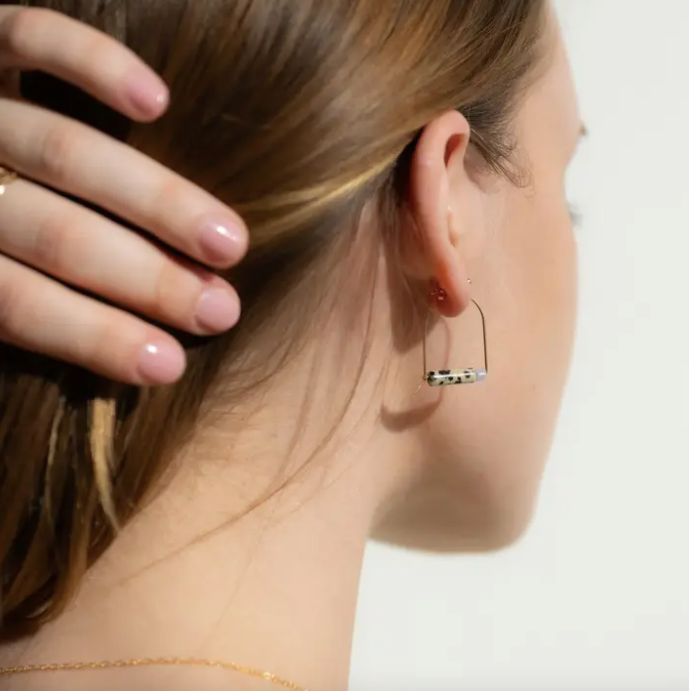 The Dalmatian Jasper Arches are a playful blend of pattern and calm. Speckled Dalmatian jasper rests within a smooth blue lace agate arch, creating a soft contrast of bold texture and airy, sky-toned stone. The curved silhouette feels modern yet organic, balancing structure with natural beauty. Lightweight and easy to style, they add interest to neutrals and pair beautifully with soft blues, crisp whites, and warm earth tones.