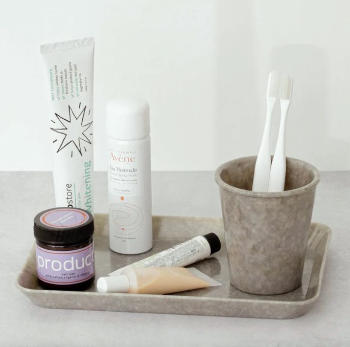 A marbled melamine tray for stationery use by Hightide. Would also work well in a bathroom or entryway as a catchall!