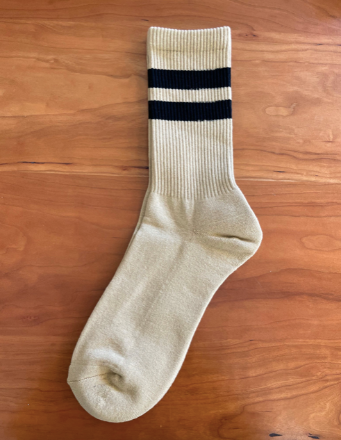 HFB gives gym socks a makeover. This supersoft pair is designed with varsity-inspired stripes that look good for both working out and going out. Made in Japan from combed cotton with a plush terry foot for added cushion and comfort.