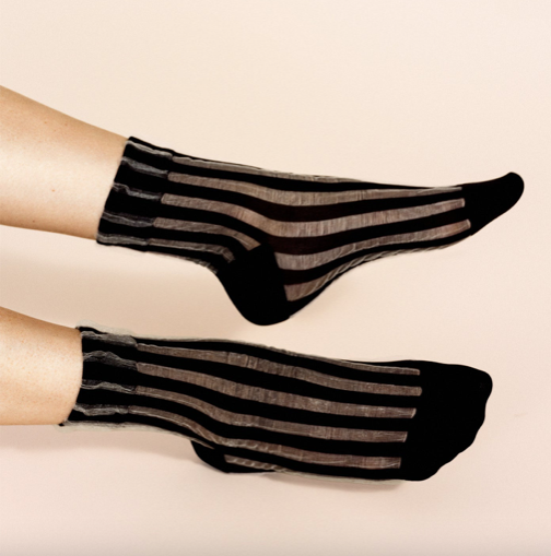 Channel your inner Grecian goddess in these supercool spongy sheer crews inspired by Greek columns and vintage towels. Wearing them just might make you feel as fabulous as vacationing by the Mediterranean Sea.