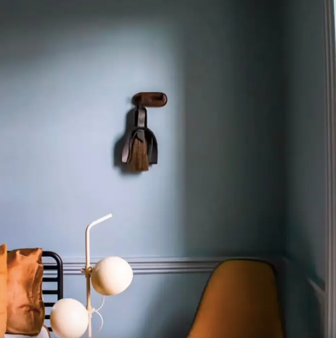 The broom is made with broom corn, hemp cord, and leather. The dustpan is made of vegetable tan leather. The dark version is dyed in house using natural processes.