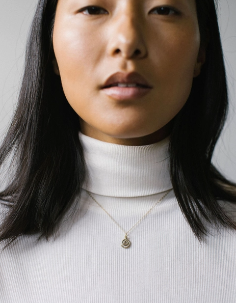 A tiny spiral charm suspended on a chain. A go to necklace that goes with anything!